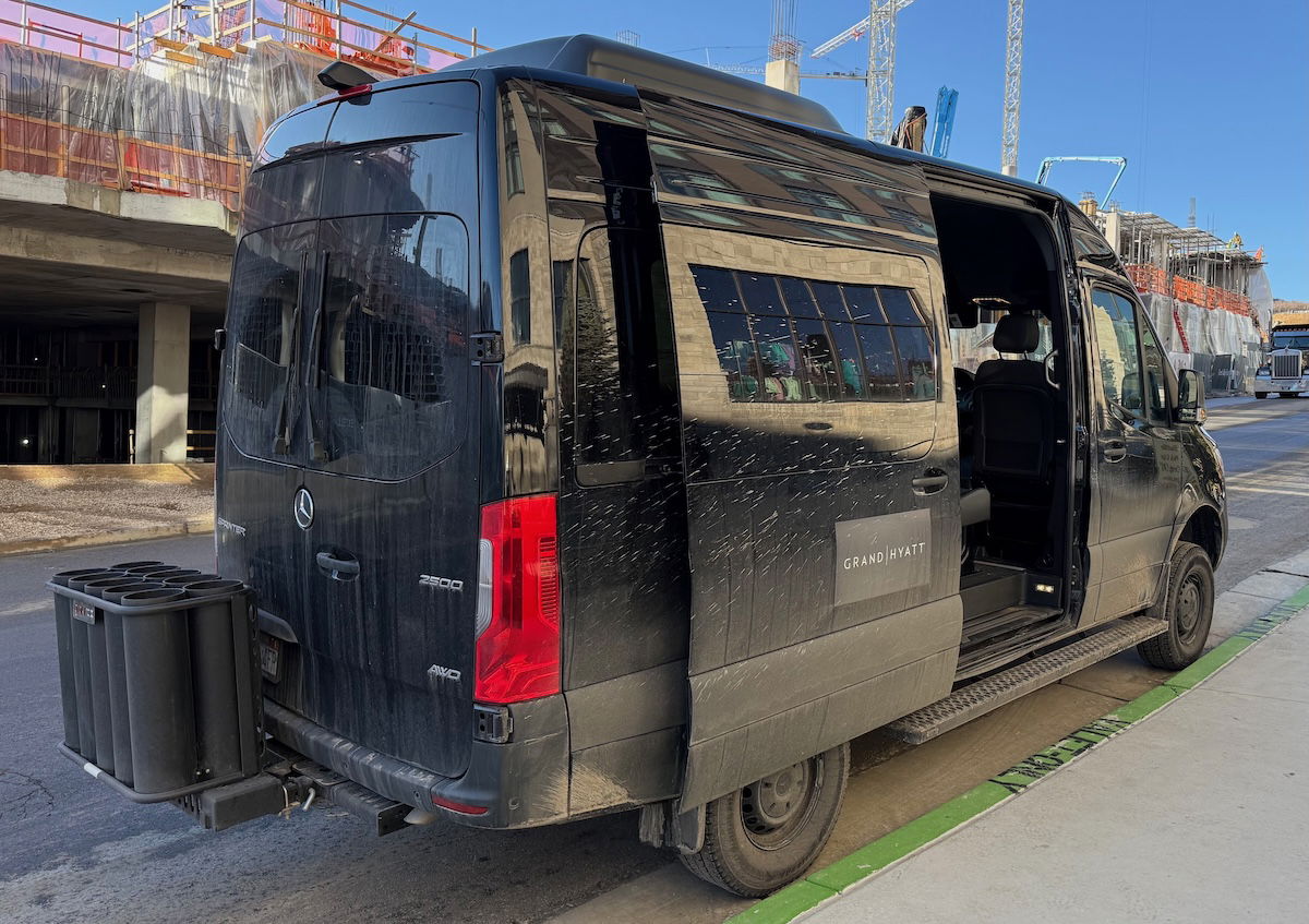 The Grand Hyatt Deer Valley isn’t ski-in, ski-out. Instead, there’s a Deer Valley East Village shuttle (it’s basically a pick-up truck with a trailer that has open-air benches), which drives between the hotel and the ski slopes. It’s maybe a two-minute drive away, so it really is very close.