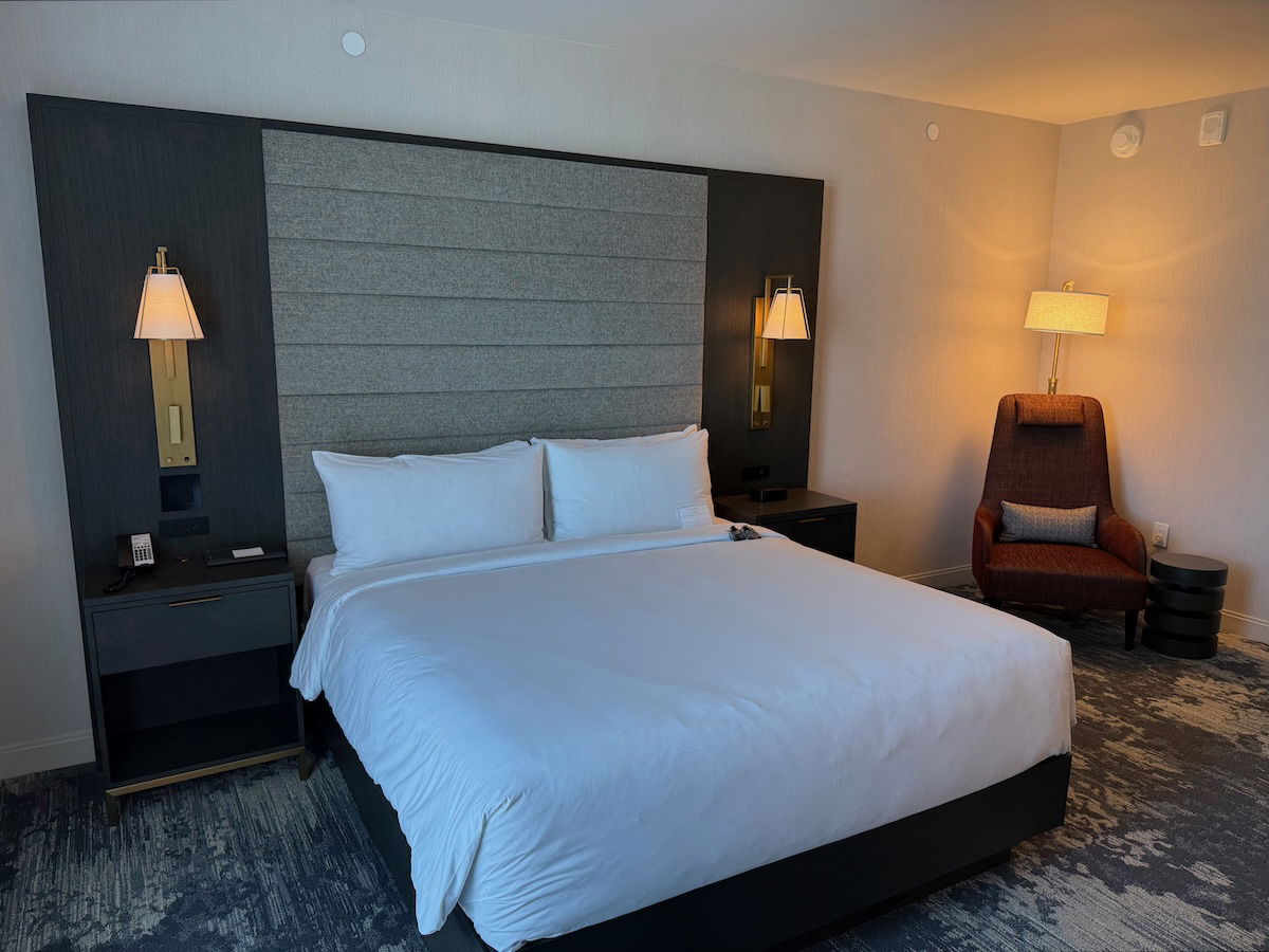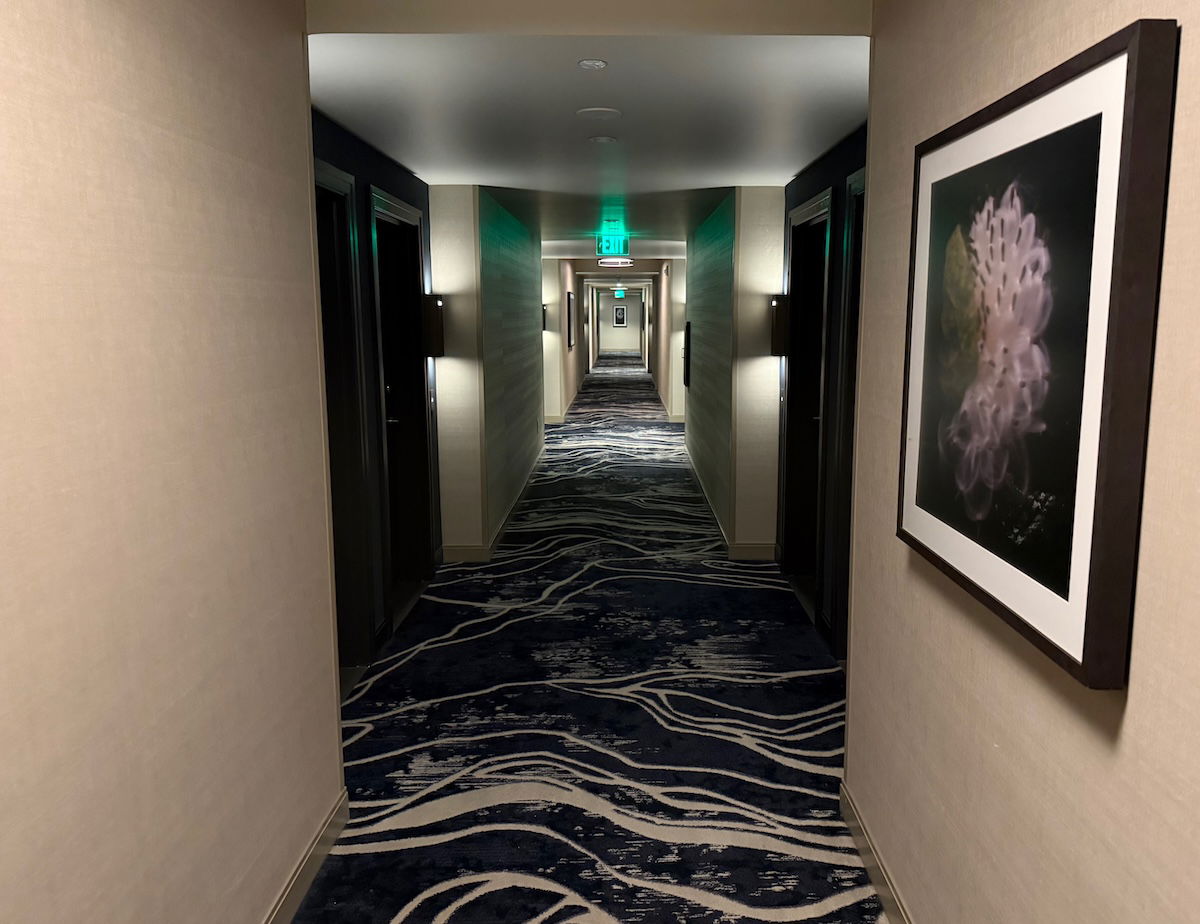 Specifically, we were assigned room 3002N (the hotel has both a north and south wing, so the “N” indicates it’s in the north wing), located on the third floor (the hotel has eight floors). Minor point, but the hotel’s hallways are super dark, to the point that I at first assumed the lights just hadn’t been turned on correctly, but nope, that was the standard.