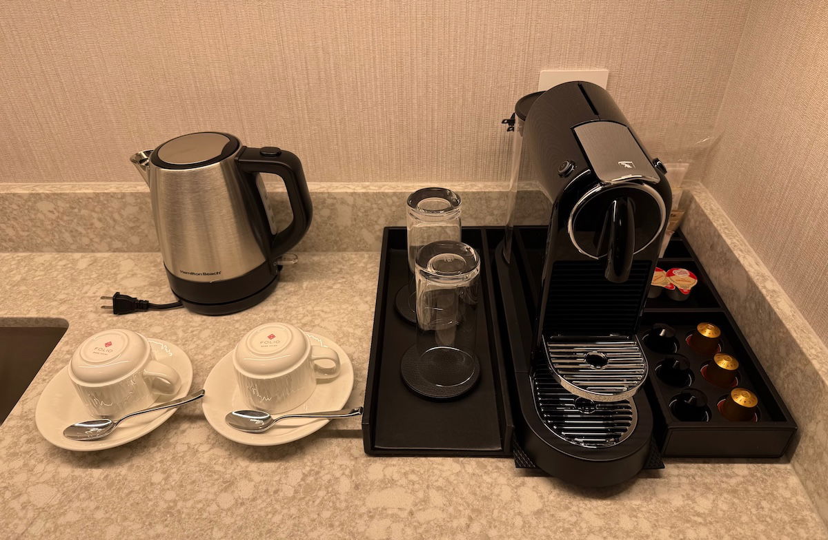 Speaking of coffee, it’s worth pointing out that the hotel has complimentary coffee and hot chocolate available in the lobby starting at 6AM daily, which is much appreciated.