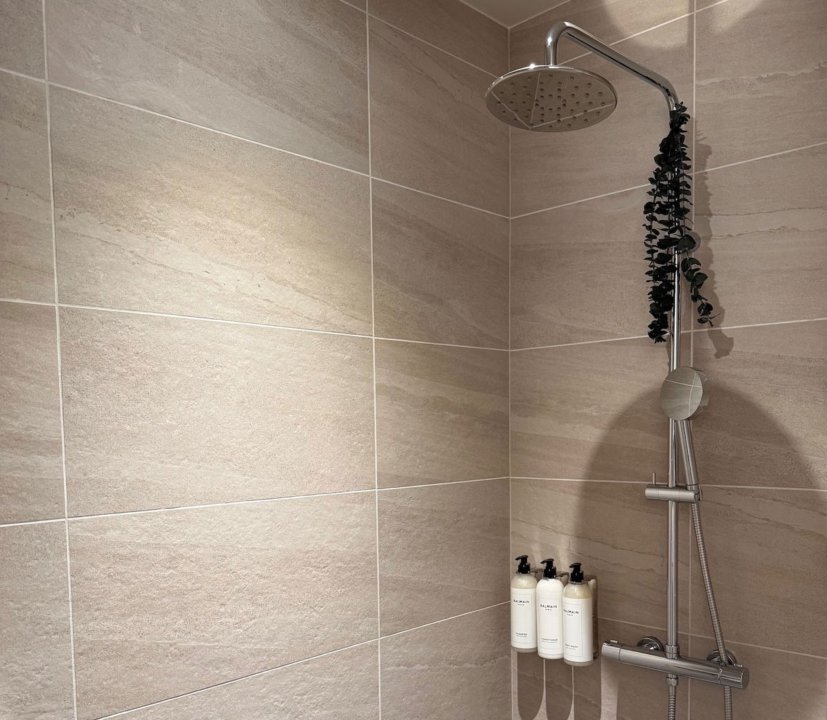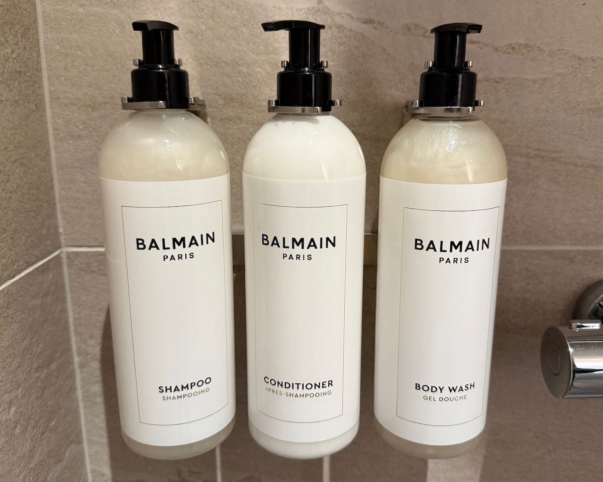 Toiletries were from Balmain, and were in wall-mounted containers.