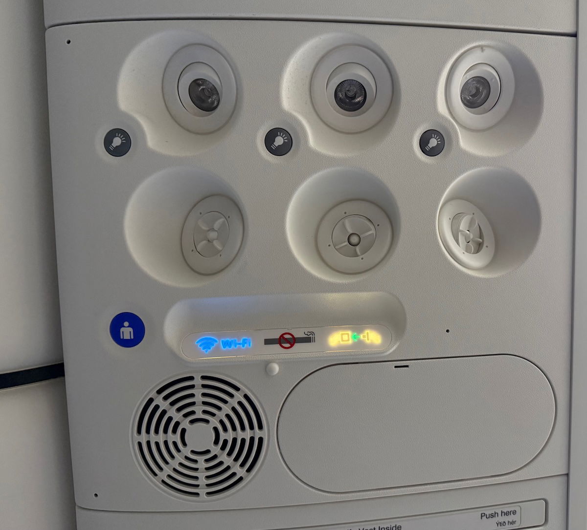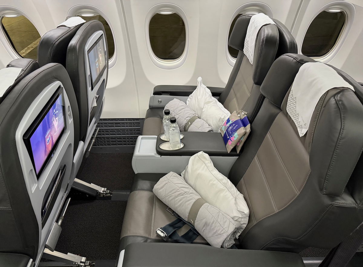Fortunately the overhead console has individual air nozzles, making it easy to stay cool on the flight. Speaking of which, the plane has the standard updated Boeing interiors, including with the larger overhead bins, so people shouldn’t have much trouble finding space for their bags.