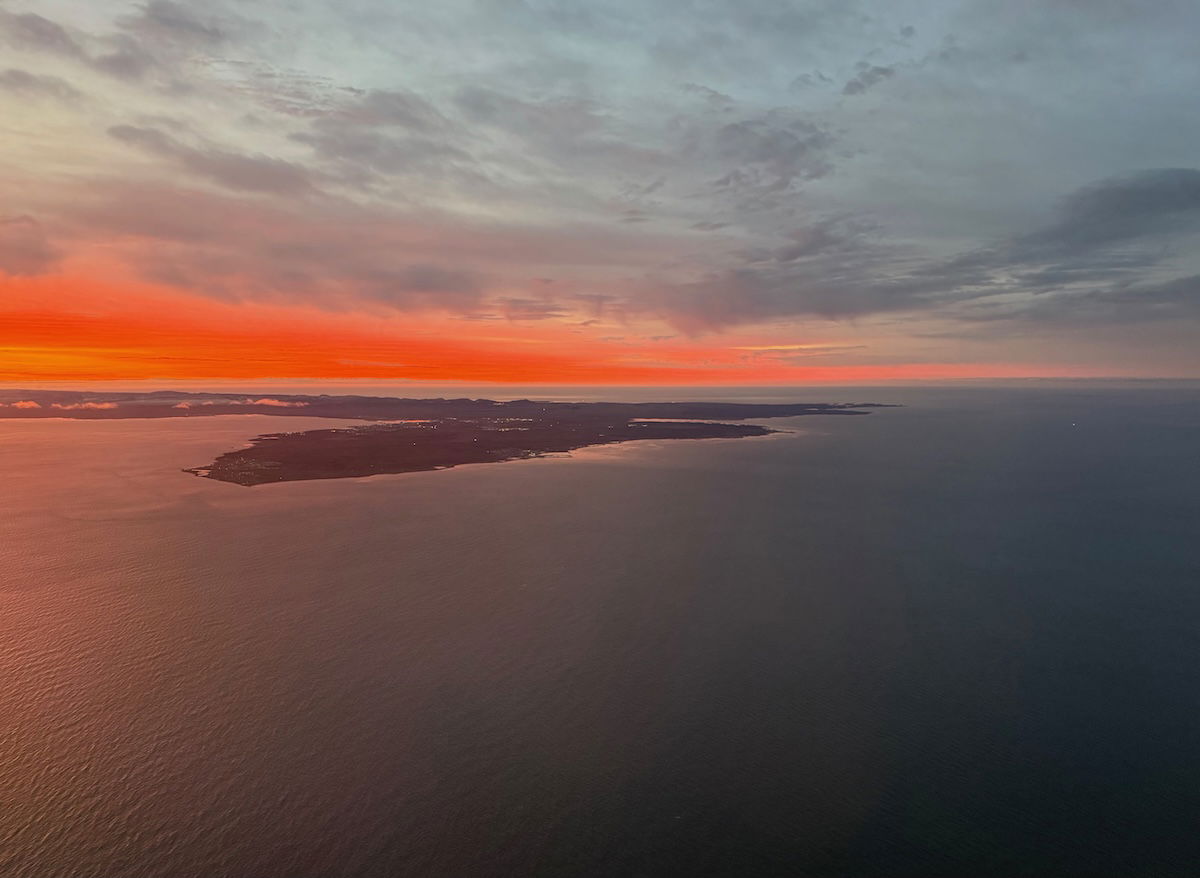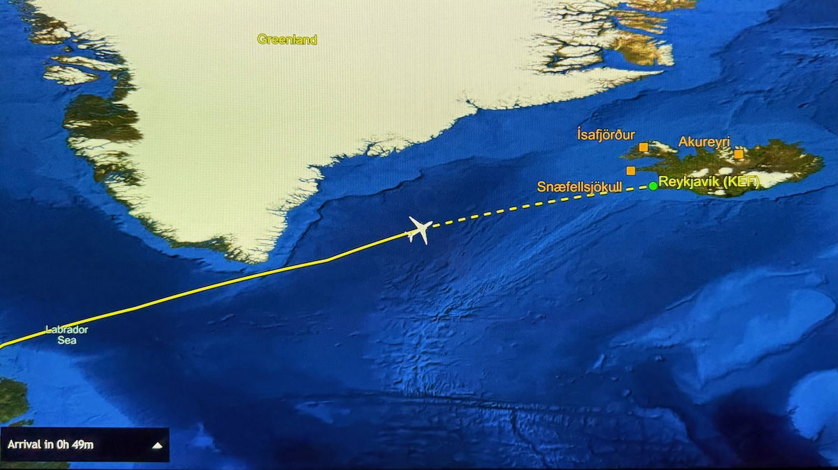 I ended up giving up on trying to sleep around 50 minutes before landing, as we were passing south of Greenland, and slowly approaching Iceland.