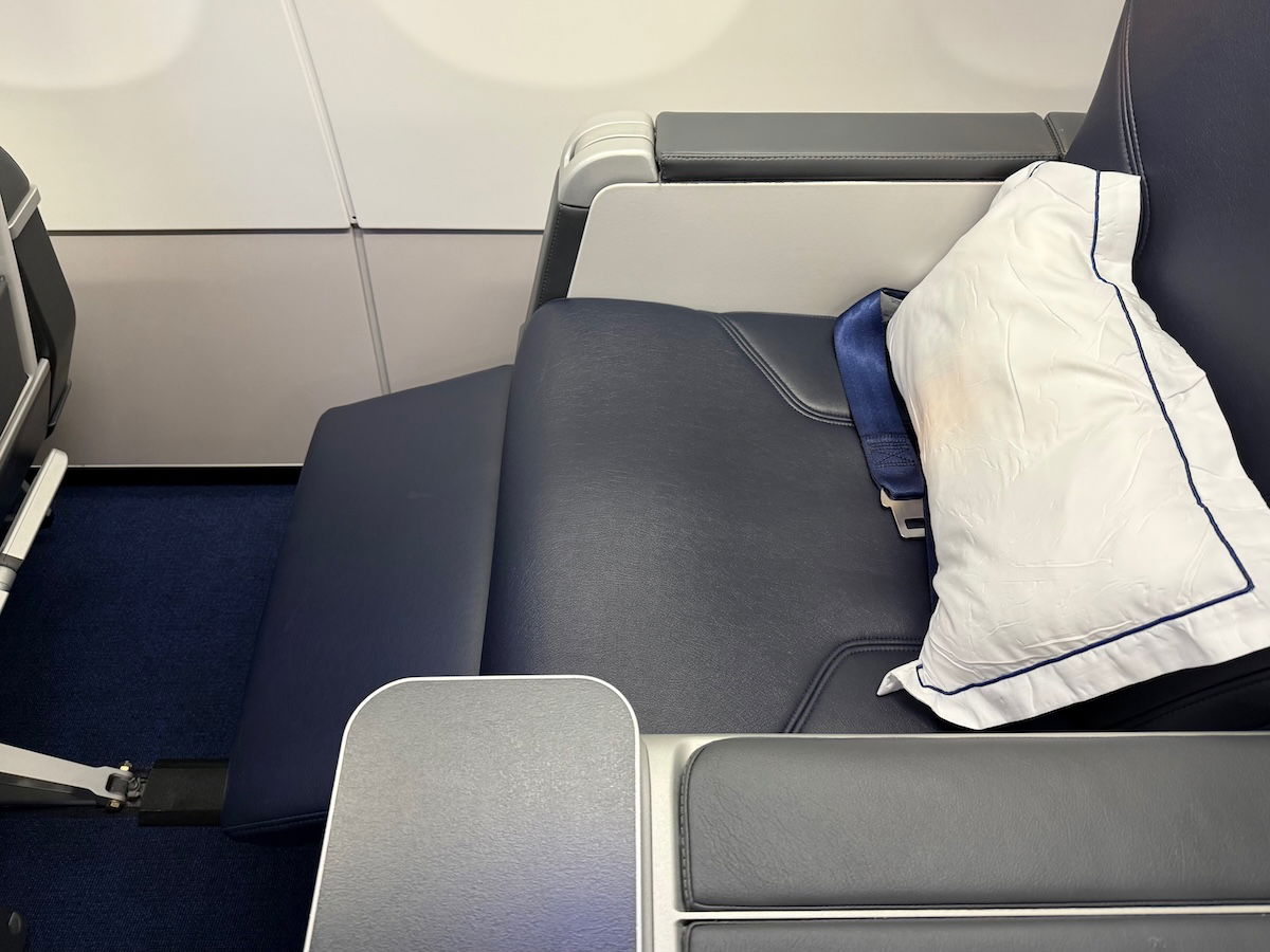 A couple of things that make this better than most comparable recliner seats is that you have both a legrest that can be raised, plus a footrest that folds down from the seat in front. I’m not sure I understand the point of these very short legrests, but there’s also no downside to them, so…