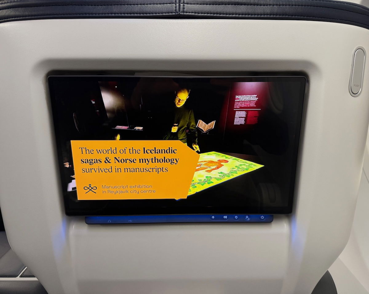 Icelandair’s A321LRs have audio and video on demand via seat back monitors, plus Wi-Fi, so let’s go over that. Each Saga Class seat has a 16″ monitor, which works from boarding until deplaning. While I wouldn’t say the selection was massive, there was a nice variety of movies, TV shows, music, and more.