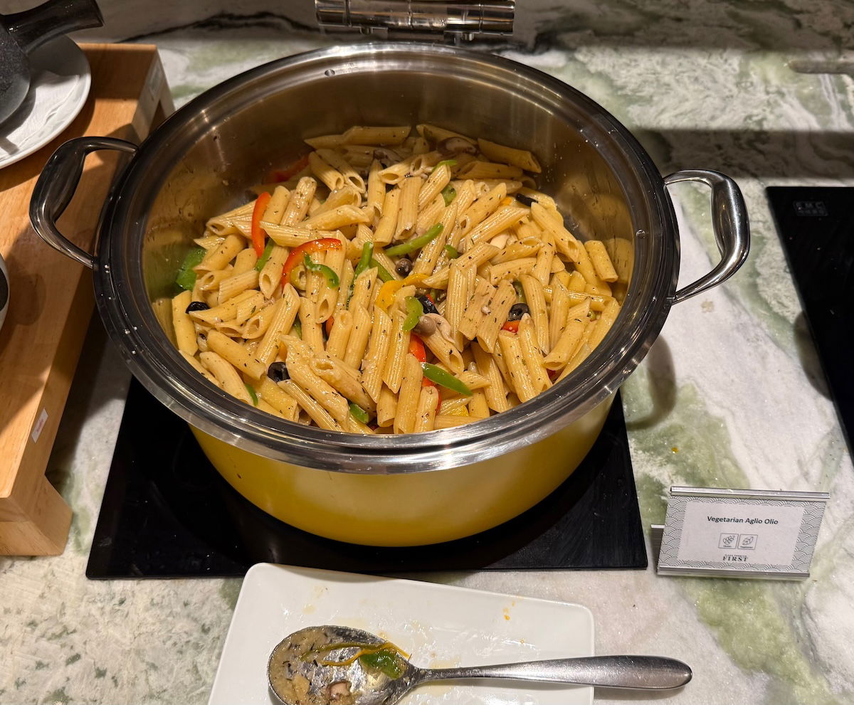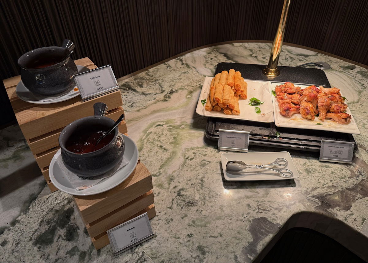 The buffet was very similar to what was found in the standard Plaza Premium Lounge, and it included fresh fruit, salad and veggies, cake, vegetarian penne, stir-fried vermicelli, spring rolls, chicken wings, etc.
