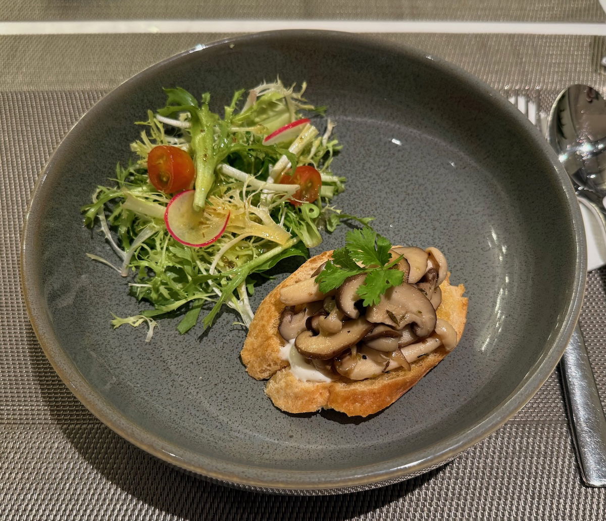 There were QR codes on each table for placing food orders, and guests could order as much as they wanted. I decided to order the sautéed mushroom bruschetta with rocket salad (admittedly it wasn’t the most Cambodian dish, but I had eaten almost nothing except Southeast Asian food in the past days, so I wanted to mix things up).