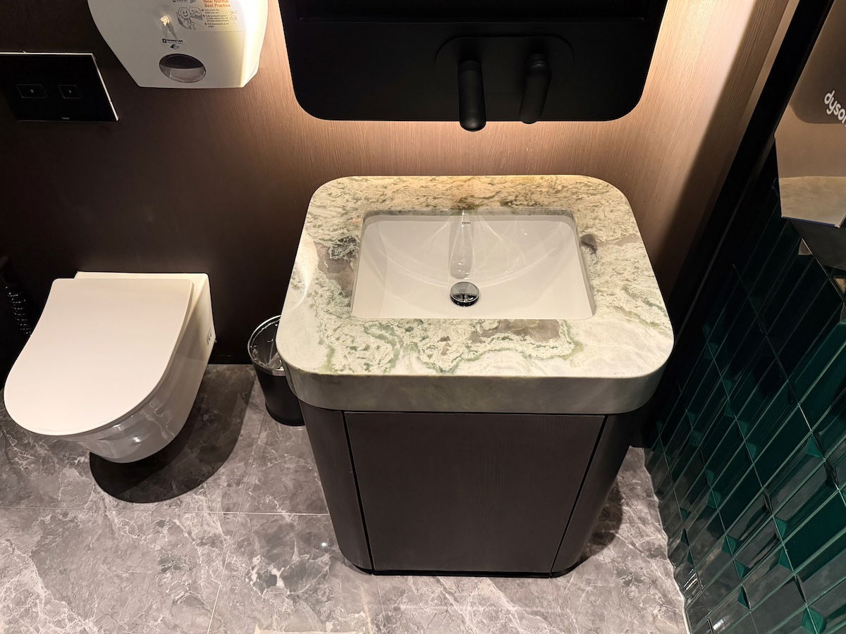 The Plaza Premium Lounge Techo has bathrooms in a couple of different areas, and they’re pretty nicely designed. In one area, the bathrooms are each individual rooms, while in another area, there are communal bathroom setups, with separate sinks, stalls, and urinals.