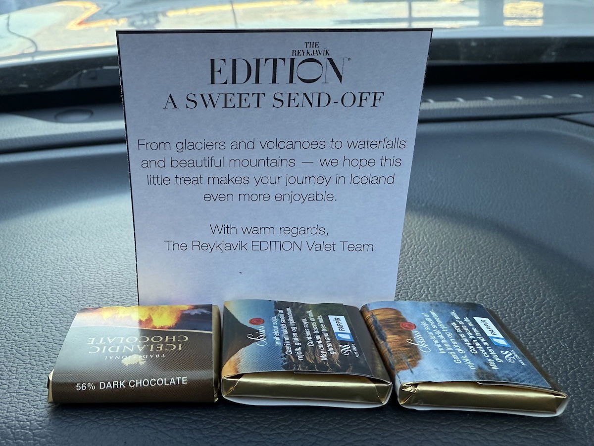 For the record, that doesn’t just seem to be a Marriott thing. Even at Torfhus Retreat (an independent property), a vast majority of the staff were foreigners. But across the board, they were genuinely friendly, and I only have nice things to say about the service. To give one example of a very nice touch, on our departure day, valet put some chocolates in our car, along with a nice note.