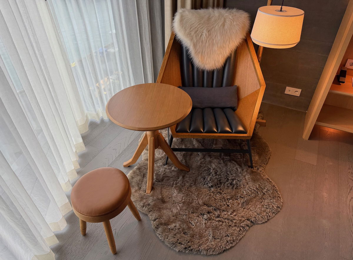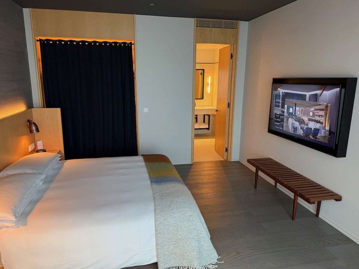 The bedroom was then beyond the living room, and it featured a king size bed, a chair with a side table, and some closet space, in the form of an exposed area with a curtain. I don’t find EDITION properties to be particularly luxurious in terms of finishes, though I at least appreciated that this property had more personality than your typical EDITION, as not everything was white.