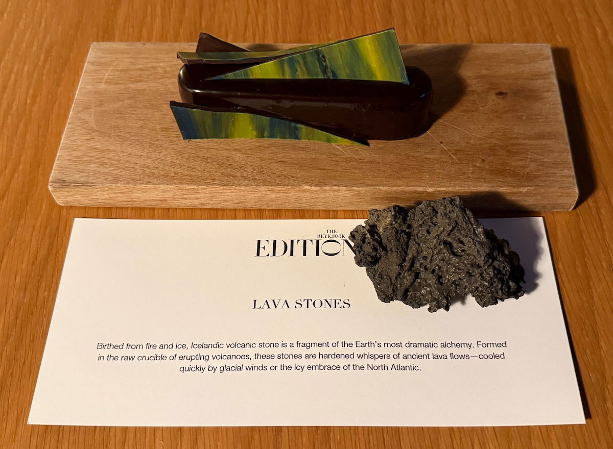 With turndown service on our last night, we were also brought a tasty chocolate tart, plus a lava stone that we could take home with us.