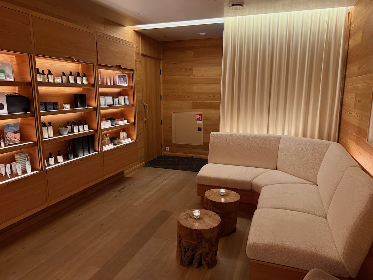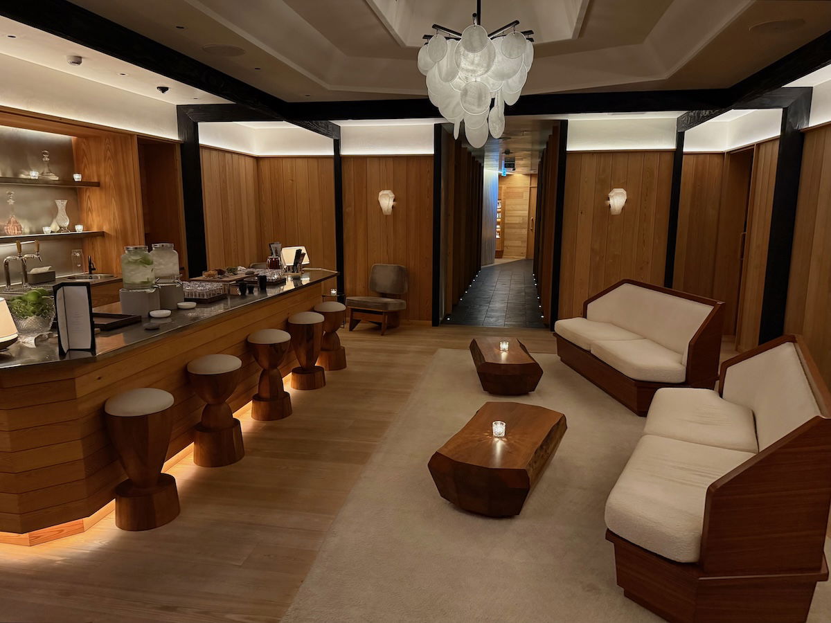 The main spa area is beautiful, with a lounging and bar area, serving juice, tea, and snacks.