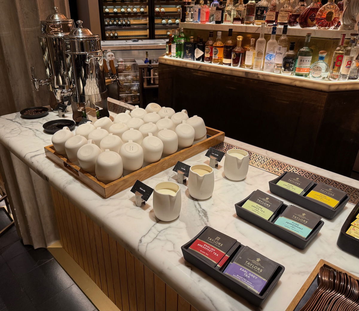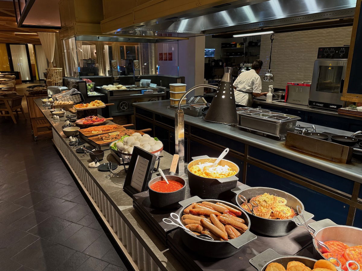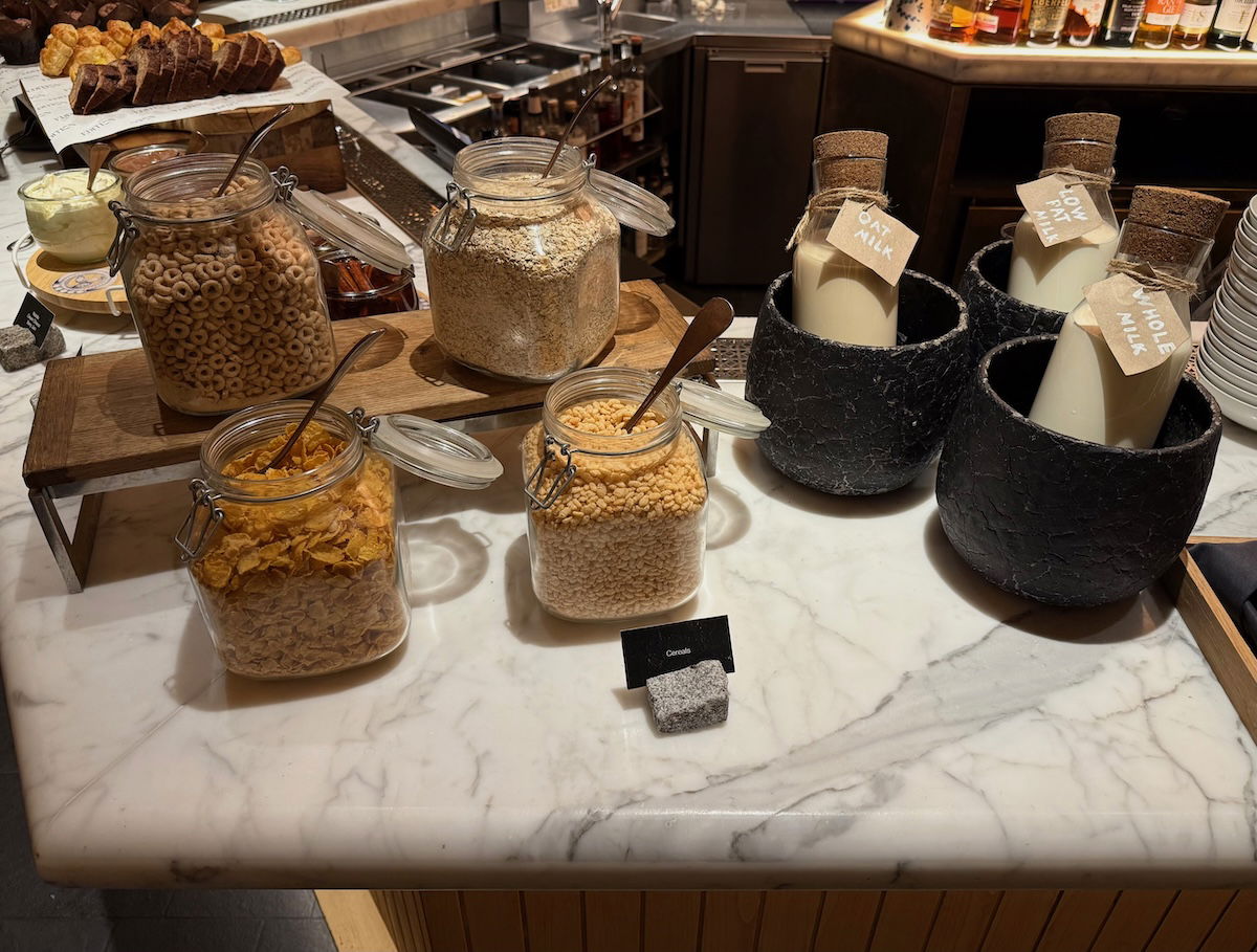 In the mornings, this is where breakfast was served. While breakfast isn’t included for Bonvoy elite members, it was included with our Marriott STARS stay. For what’s ostensibly supposed to be a luxury brand, the whole breakfast experience felt quite low-touch, in the sense that even coffee, tea, and juice, are self-serve from the buffet.