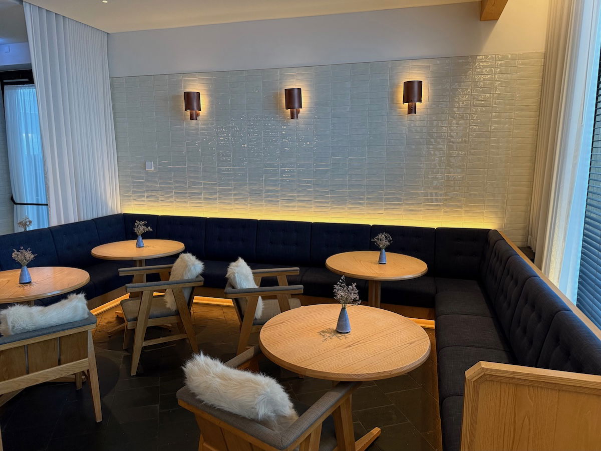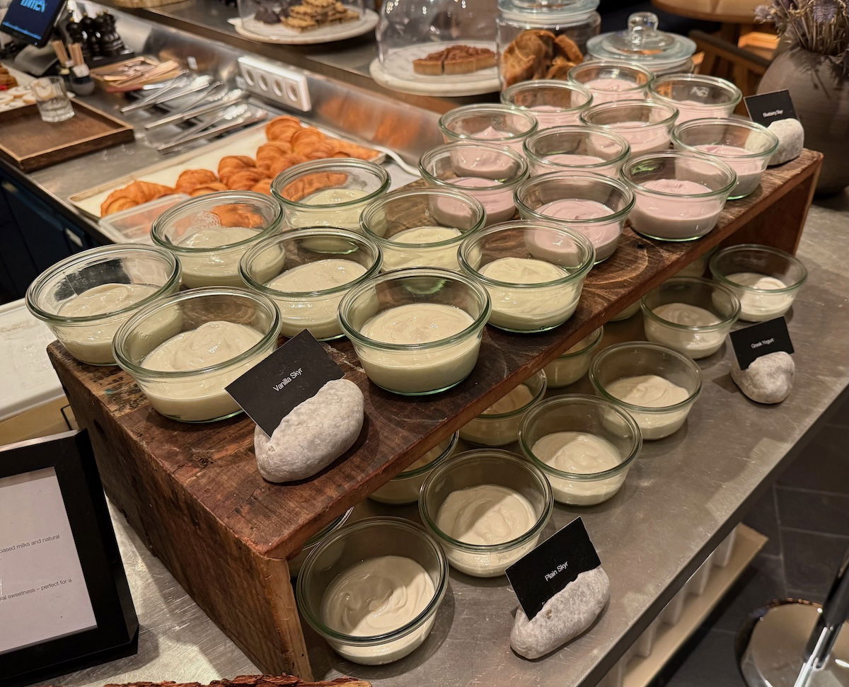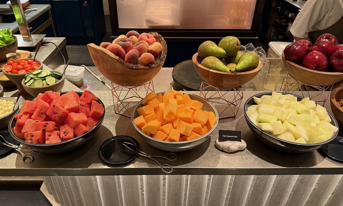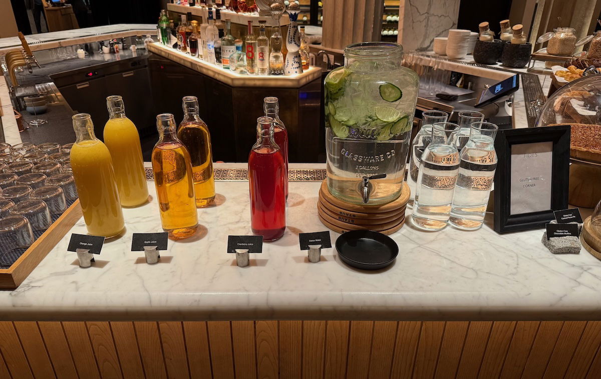 In the mornings, this is where breakfast was served. While breakfast isn’t included for Bonvoy elite members, it was included with our Marriott STARS stay. For what’s ostensibly supposed to be a luxury brand, the whole breakfast experience felt quite low-touch, in the sense that even coffee, tea, and juice, are self-serve from the buffet.