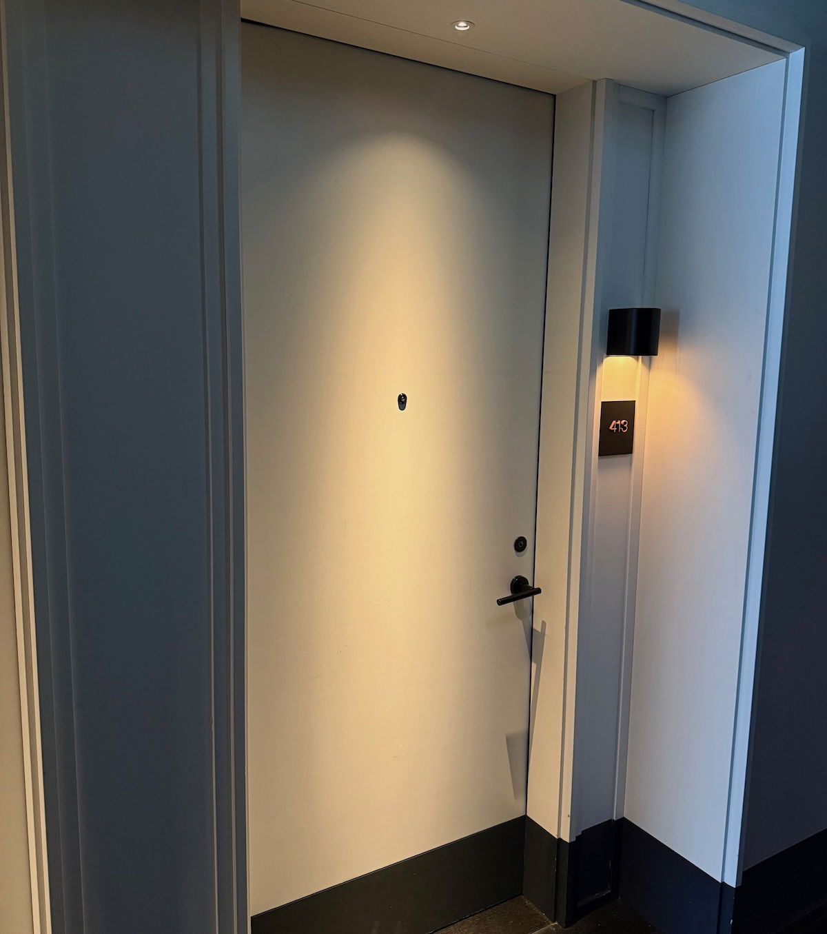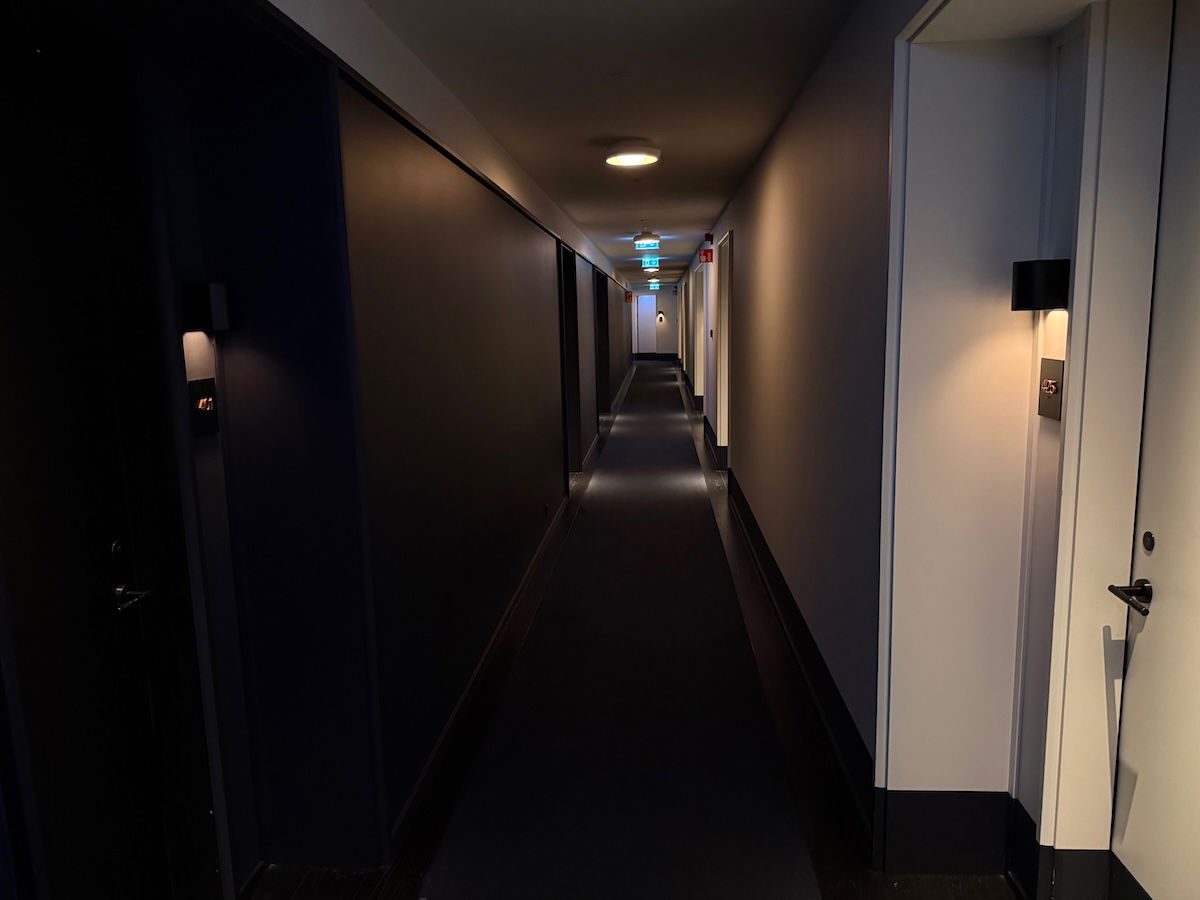 Hideous and/or poorly lit hallways seem to be brand standard for EDITION, and this property was no exception. It actually looked a little nicer than your typical all-white EDITION hallway, though the lighting was turned down frustratingly low, and there was quite a bit of chipped paint.