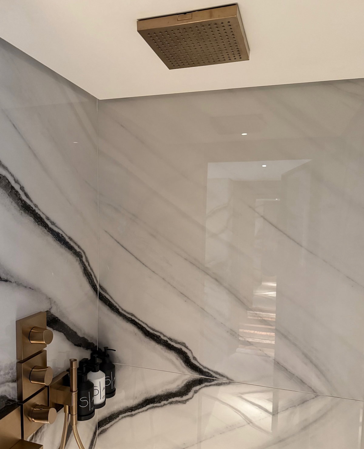 The streaked marble is disorienting. The pattern much to large for smaller spaces. With a multitude of mirrors it's like it was designed by the Mad Hatter