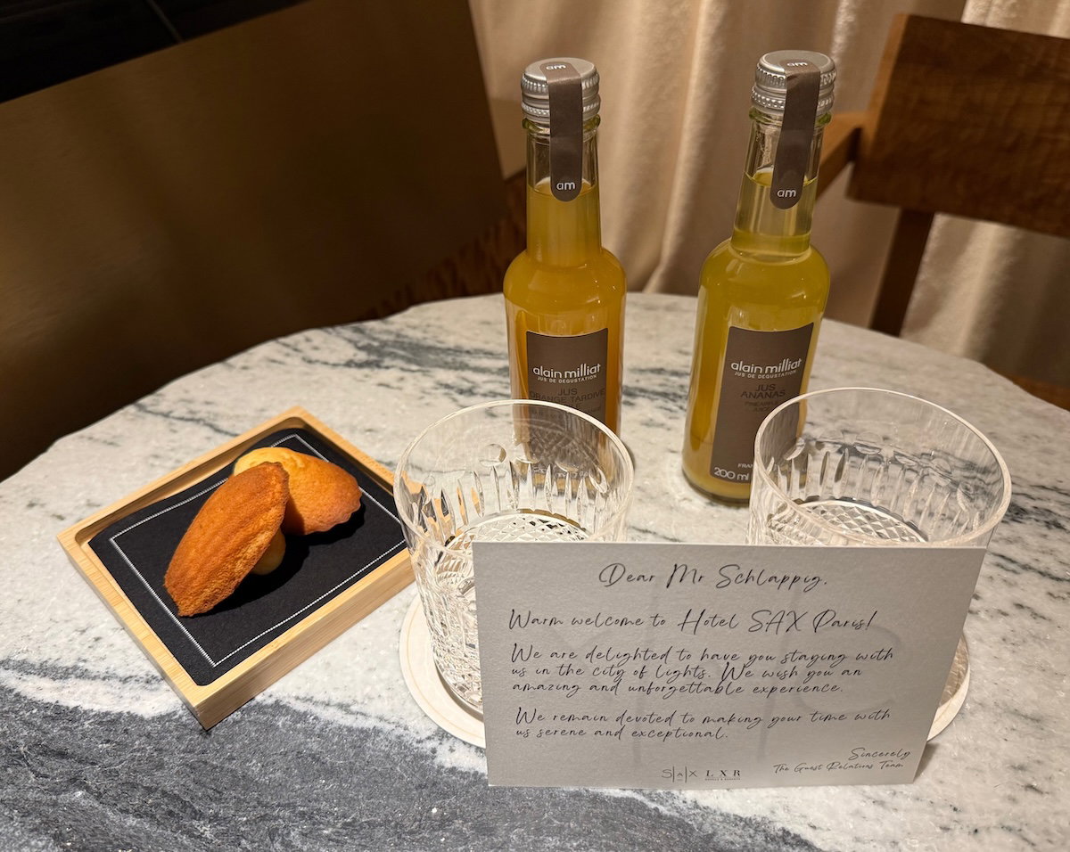 Around an hour after checking in, I was brought a welcome amenity, consisting of a couple of madeleines and two bottles of juice.