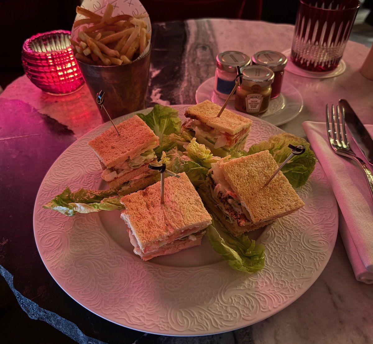 Later in the evening I met a friend for drinks at the hotel, and ordered a negroni, which was excellent, and was served with nuts and olives. While I was initially going to go out to eat, I ended up just ordering a club sandwich, as exhaustion got the best of me.