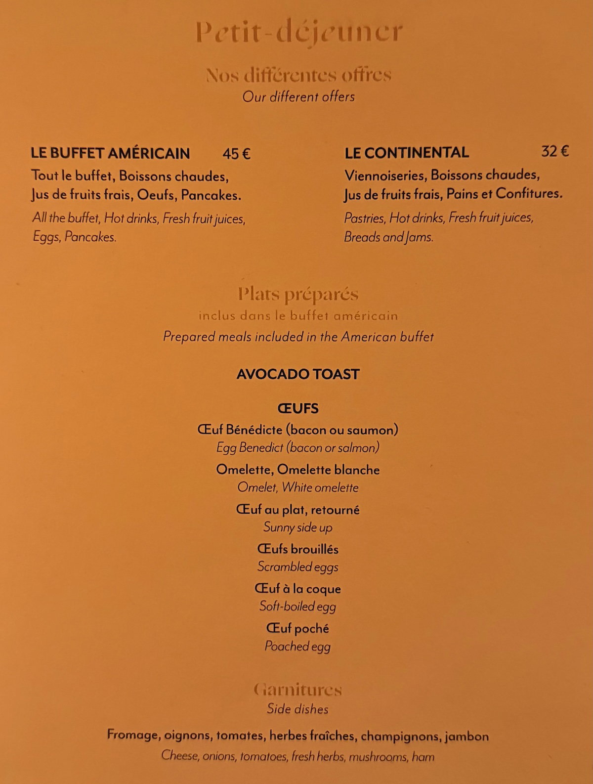 There were two breakfast options — for €32 you could have just the buffet, and for €45 you can also add an extra dish. The Hilton Honors Diamond breakfast included the full option.