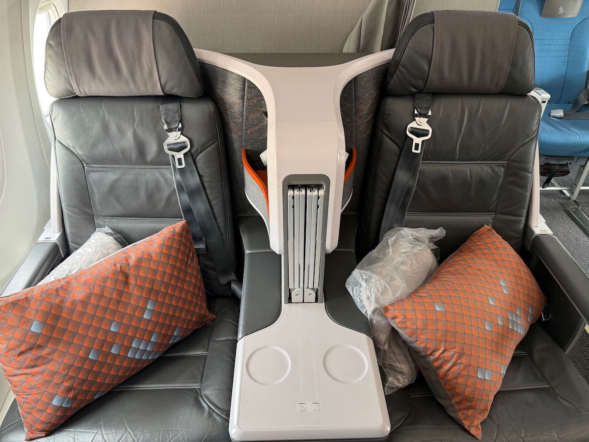 In the first and last row you’ll find pairs of seats, which are good for those traveling together (or anyone, really — this is still a perfectly nice product when sitting next to a stranger, especially given that these planes aren’t operating long haul flights).
