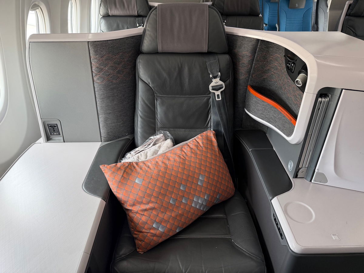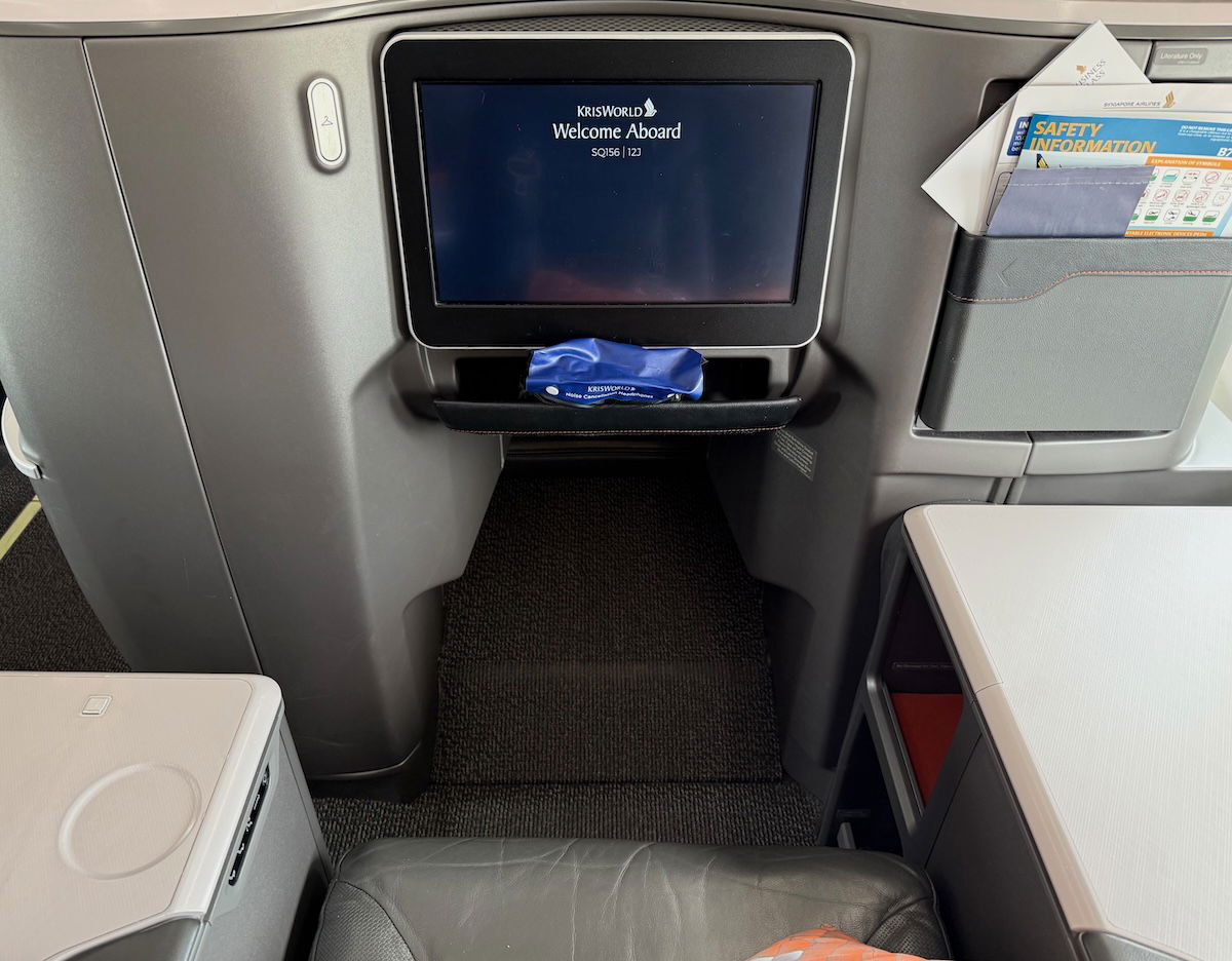 Note that Singapore Airlines blocks these seats in advance for everyone except elite PPS Club members. However, starting 96 hours before departure, passengers can assign these seats on a first come, first served basis. I was in seat 12J, the “throne” seat on the right side.