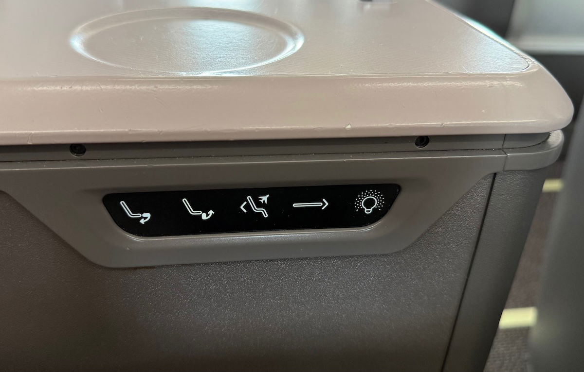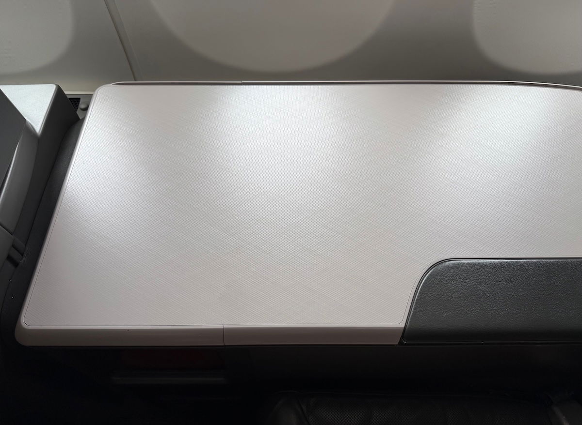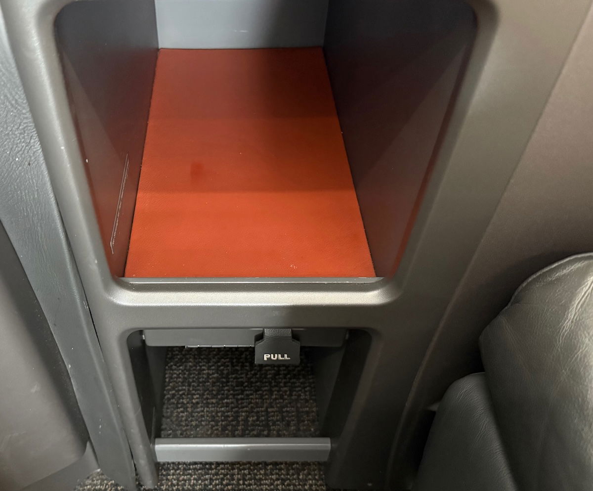 Speaking of storage, there’s also a large exposed storage area to the side of the seat, where items can be placed during the flight.