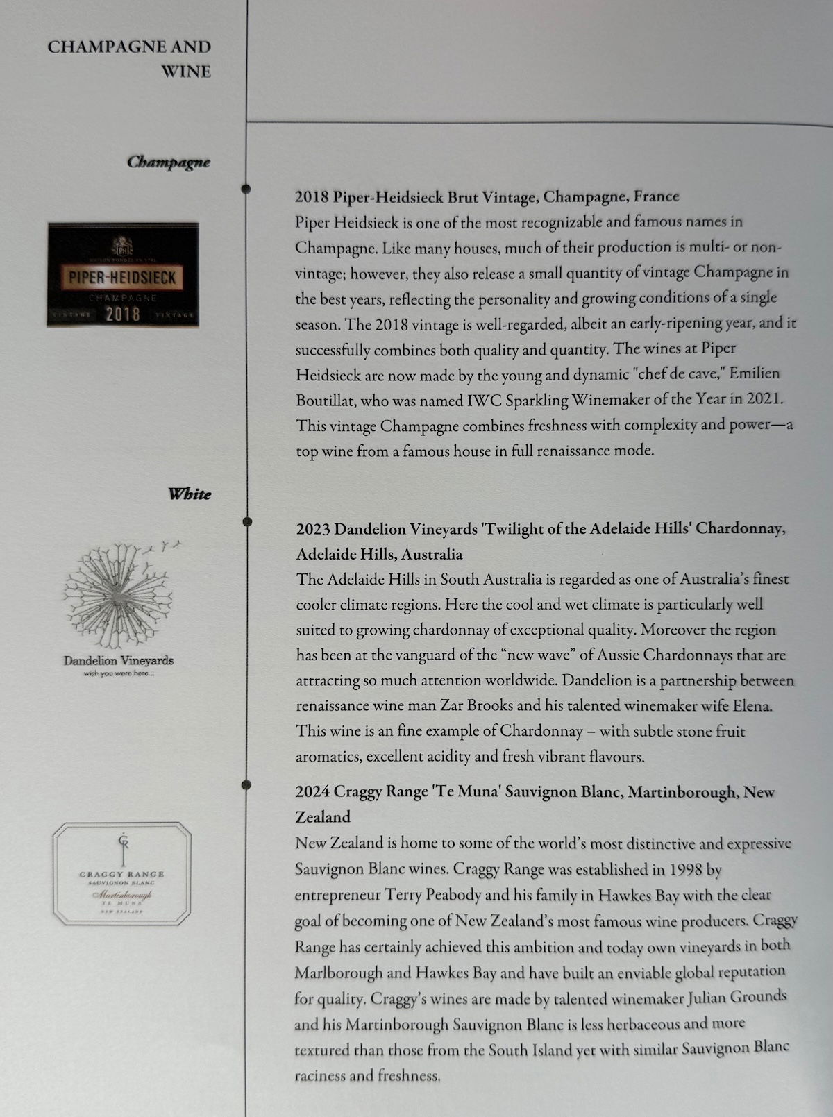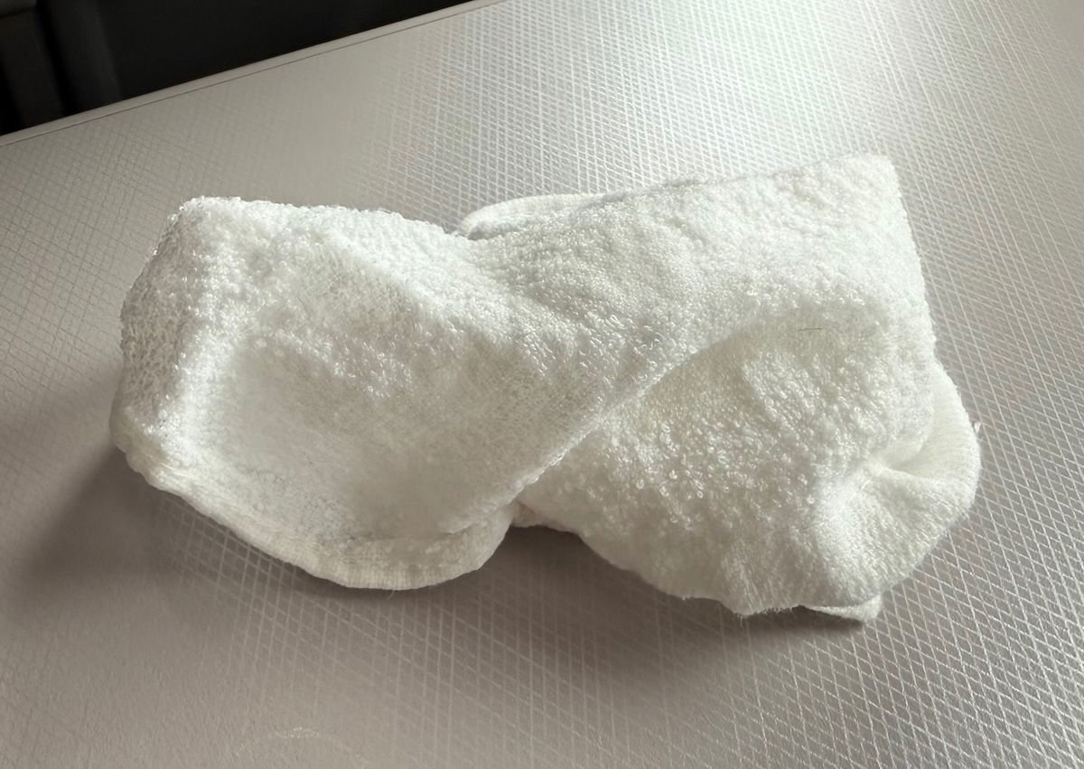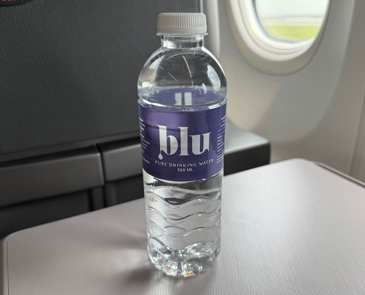 Also during the boarding process, passengers were offered pre-departure drinks, with the choice of a bellini, champagne, or orange juice, plus warm towels, and bottled water.