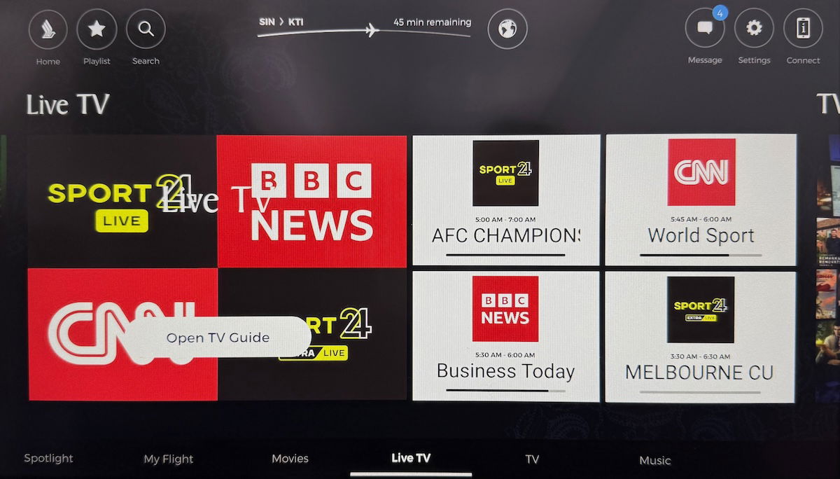 Singapore Airlines 737 MAX business class entertainment & Wi-Fi