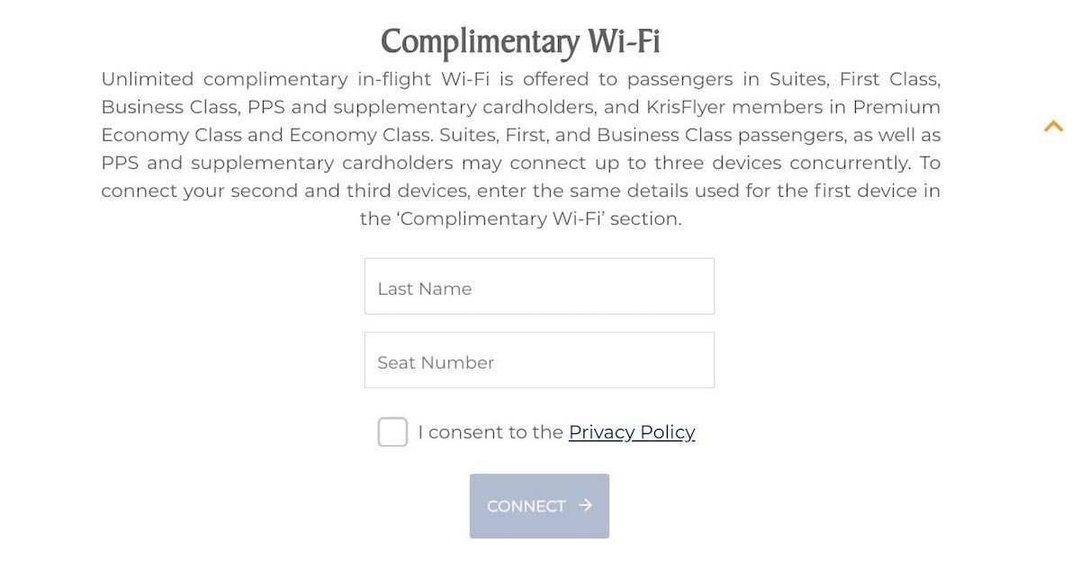 Connecting was easy, as I just had to enter my last name and seat number. I found speeds to be good, and I could switch between devices with my complimentary pass.