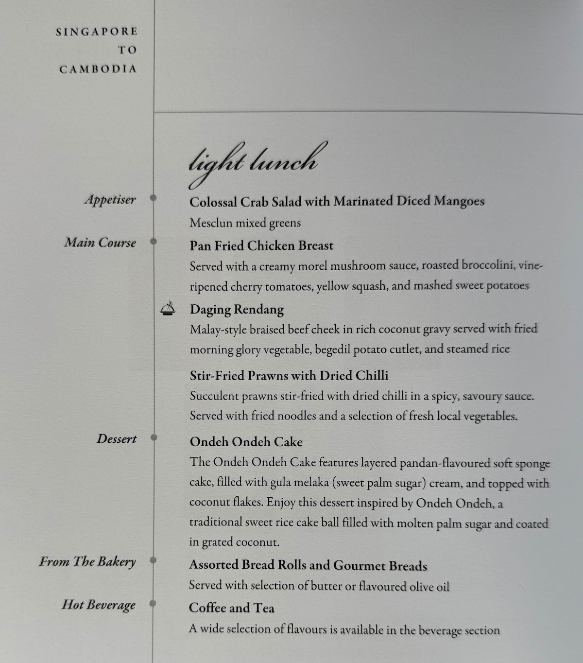 Lunch was served on this Singapore Airlines business class flight, and you can find the menu below.