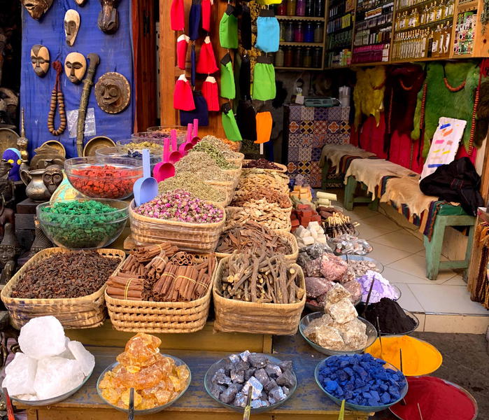 True Moroccan food (getting away from the usual drivel served to tourists at restaurants with laminated menus) is delicious, with delicate seasonings and ingredients that reflect both the Berber culture and the exchanges with other traditions based on Morocco being a trading hub for centuries. Generally when we take a cooking class — something we like to do in most places we visit — time is spent on techniques and spices, and there’s something you can take back with you.