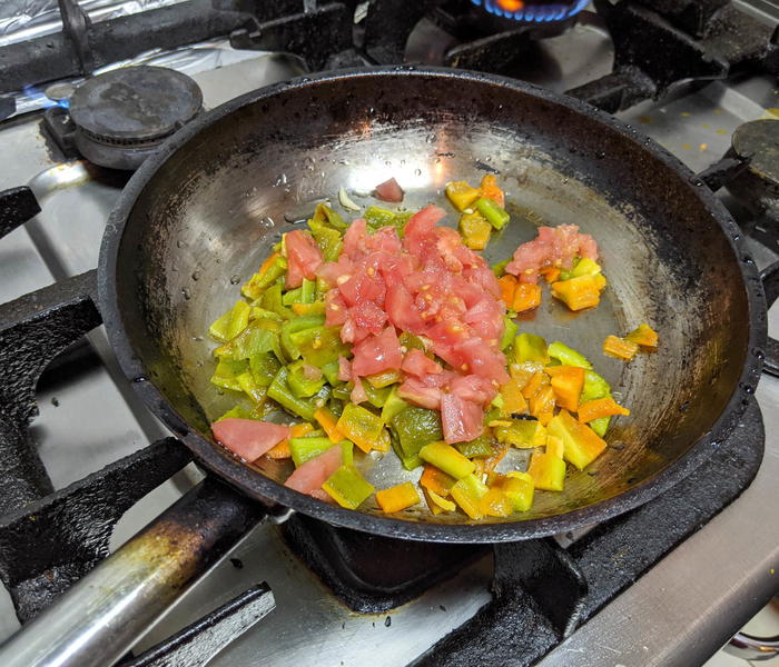 We did, however, embark upon preparing an obscene quantity of food for two people at lunch — massive halibut filets, and four different salads. Which mostly involved a lot of chopping, and a shocking amount of tomato-peeling.